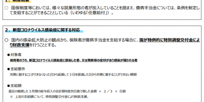 新型コロナウイルス感染症の拡大に伴い、 その緊急対応策として、 国民健康保険にも傷病手……